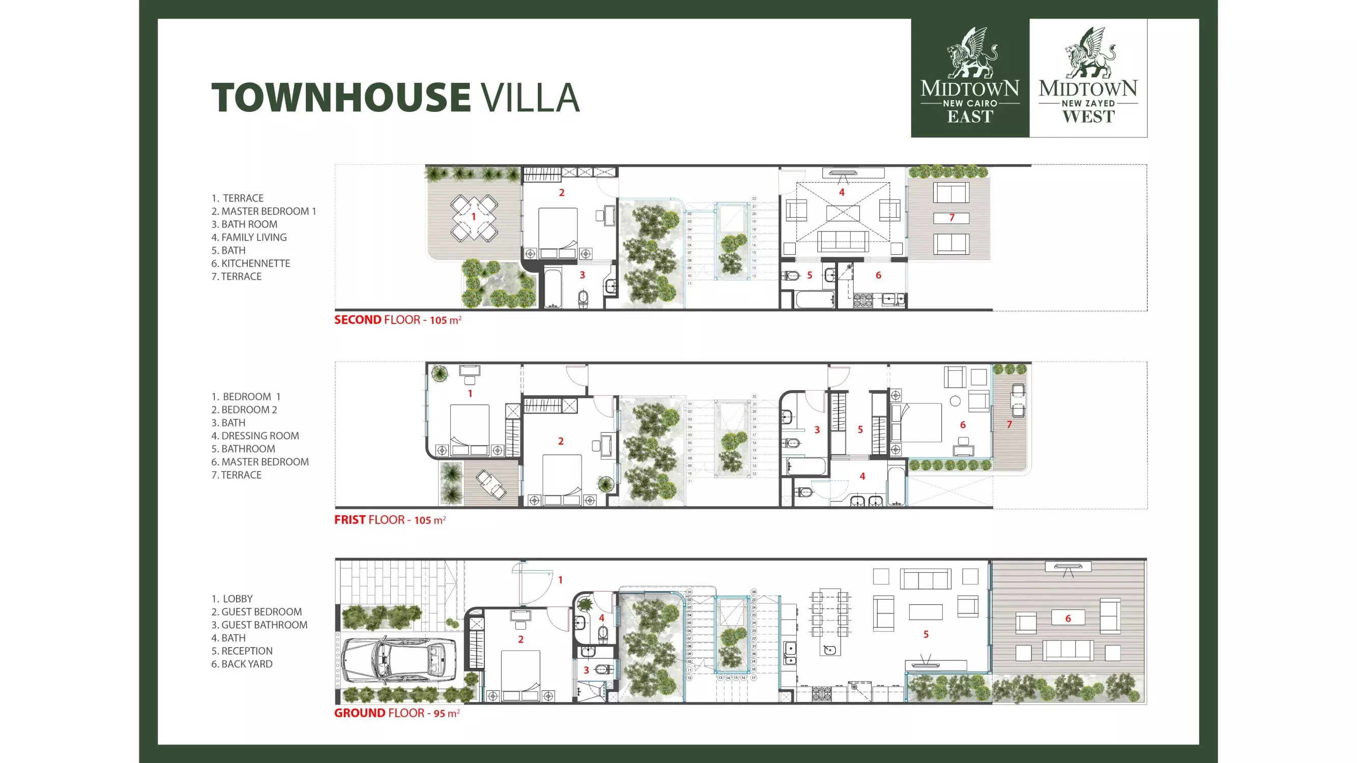 يقع مشروع ميدتاون ويست في مدينة زايد الجديدة، بالجيزة. شركة بيتر هوم هي المطور العقاري للمشروع. أنواع العقارات في ميدتاون ويست: فيلا، تاون هاوس، بمساحات تتراوح بين 360 و360 مترًا مربعًا.