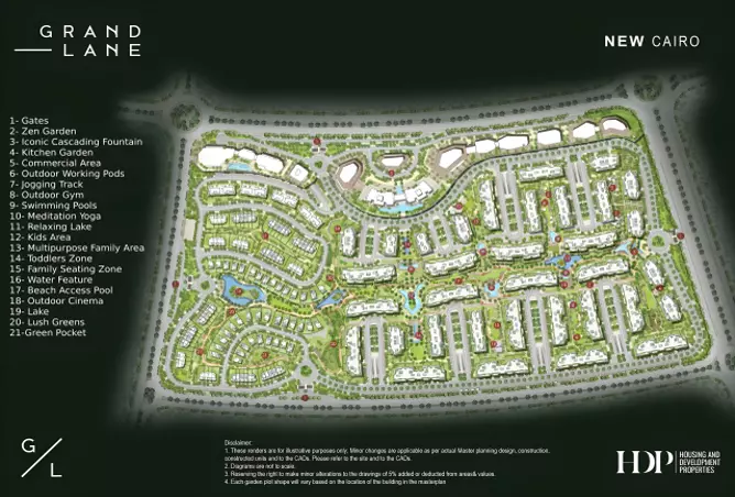 HDP carefully selected the location of Grxand Lane Compound in the heart of the Sixth Settlement, making it one of the strongest residential and investment destinations in East Cairo. The location offers the perfect balance between privacy and serenity, while providing easy access to major roads and key destinations.