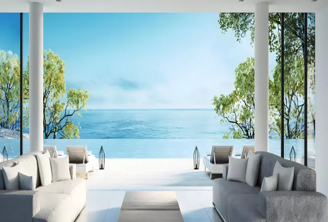 The compound's design features a modern style that blends coastal aesthetics with the surrounding nature. The project was carefully planned to ensure that most units have views of the sea or inland waterways, while also incorporating open spaces that guarantee good ventilation and natural light.