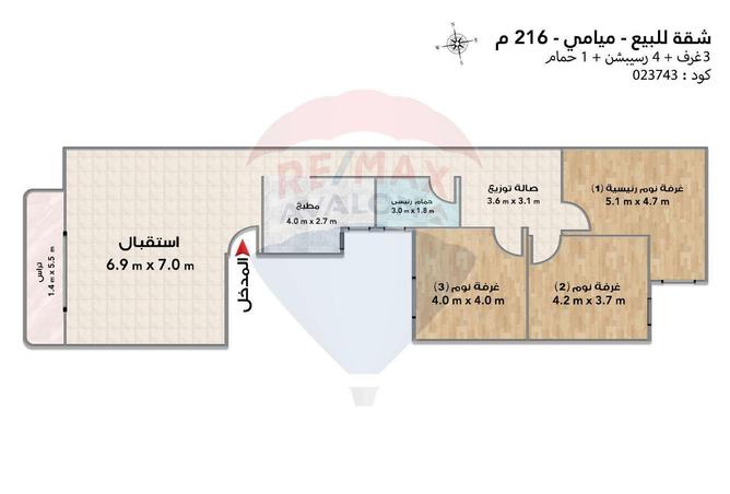 شقه للبيع 216 م ميامي ( ش محمد عوض )